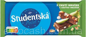 Шоколадка Studentska Hrusek (Studentska Груша) — це чеський молочний шоколад від виробника Orion, який поєднує в собі ніжний молочний шоколад, арахіс, шматочки груші та желейні фрукти. Це унікальне поєднання інгредієнтів, яке створює насичений смак з різноманітними текстурами в кожному шматочку.